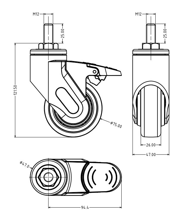 58系列腳輪主架和輪芯采用高強度聚酰胺制材質,美觀,防腐,防生銹,轉動部分均采用精密滾珠軸承結構、轉動靈活靜音,承載性能好,保證了腳輪的使用壽命