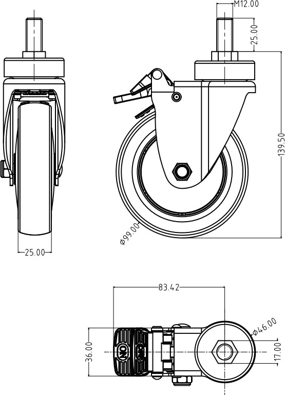 48系列均采用鋼架主體結構,具有更強的承載能力,萬向轉動及輪軸均采用精密靜音滾珠軸承, 轉動靈活靜音效果佳;雙聯動剎車結構,制剎效果好;輪片有輪蓋設計,防塵、防纏繞,保護輪子轉動。